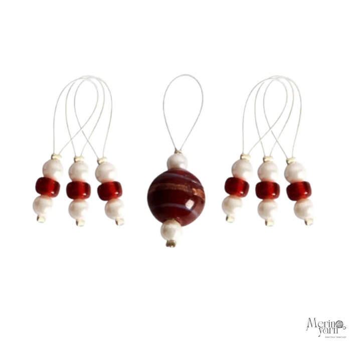 Design vesel & practic: Setul conține 6 marcatori cu mărgele roșii și albe și un marcator distinct, de dimensiuni mai mari, maro cu alb – perfect pentru a marca începutul rândului sau secțiuni cheie în modelul tău.