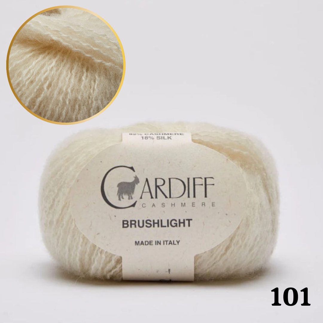 Descoperă rafinamentul absolut al firului Cardiff Brushlight, o alegere premium pentru proiecte cu adevărat speciale. Brushlight îmbină cașmirul fin (82%) cu mătasea mulberry (18%), rezultând un fir periat, extrem de moale, cu un aspect aerat și elegant. Datorită fineții sale, este potrivit atât pentru proiecte de iarnă, cât și de vară, fiind versatil și plăcut la atingere.